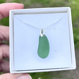 Deep Green Sea Glass Pendant – Sterling Silver Chain & Bail