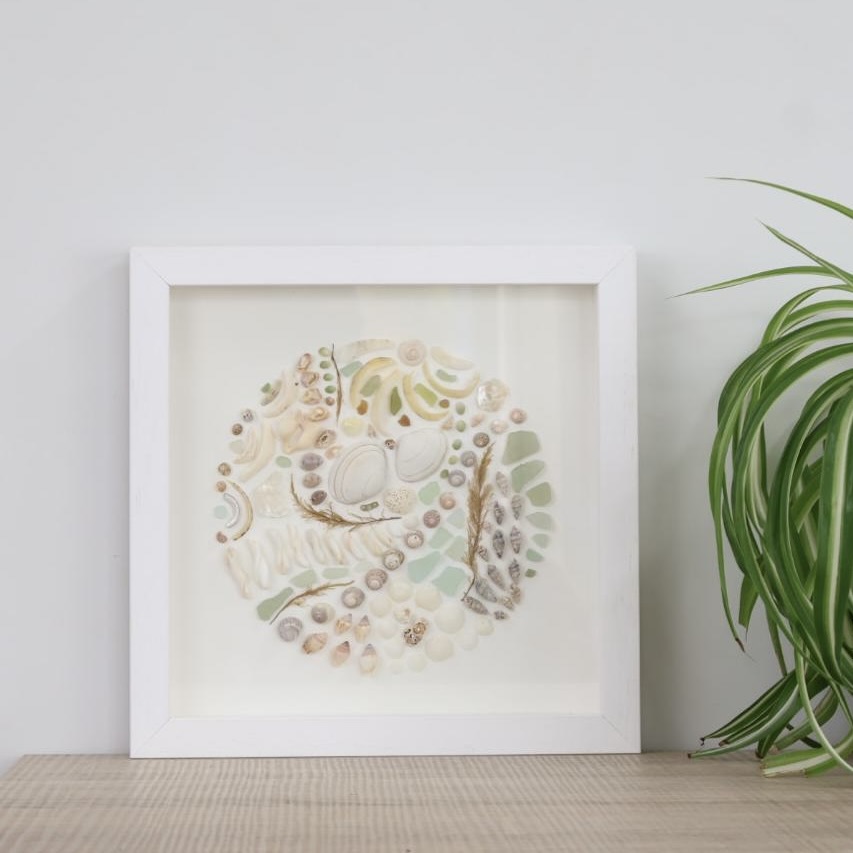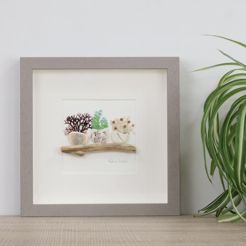 Art: pebbles, driftwood, sea glass