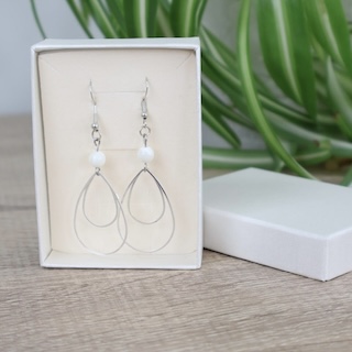 Mother of Pearl Bead Earrings – Silver-Coloured Brass Teardrop Design